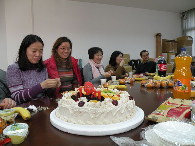 12月31日,外语学院工会在延安路校区为12月过生日的老师们举办了一个简单却不失隆重的集体庆生会。工会为“寿星”们买来生日蛋糕,工会委员们将一块块生日蛋糕递到每一位老师的手里,老师们现场还以歌曲演唱、乐器演奏等多种形式表达对过生日老师的祝福,庆生会现场洋溢着欢乐温暖的氛围。