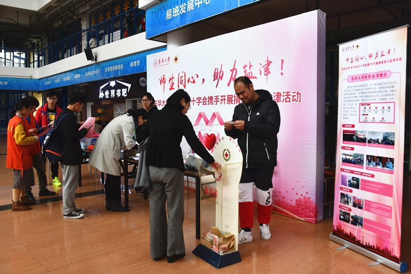 活动吸引了大批师生踊跃参加。长宁区红十字会在两校区摆设捐款箱,并安排工作人员到现场指导、监督、管理,确保合法合规开展募捐活动。从个人到机关、学院、支部,大家纷纷慷慨解囊,单笔善款额度从几十元到上千元不等。一位在机关工作不愿意留下姓名的捐款老师说:“早就了解到学校对盐津进行了多方面扶贫,现在能通过捐款为盐津脱贫做些力所能及的帮助很有意义。”