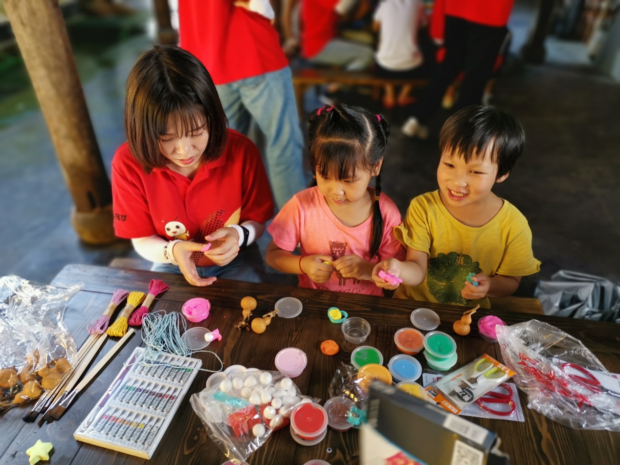 图为化工生物学院赴浙江省建德市实践团教授小朋友沪郊特色“七彩葫芦画”