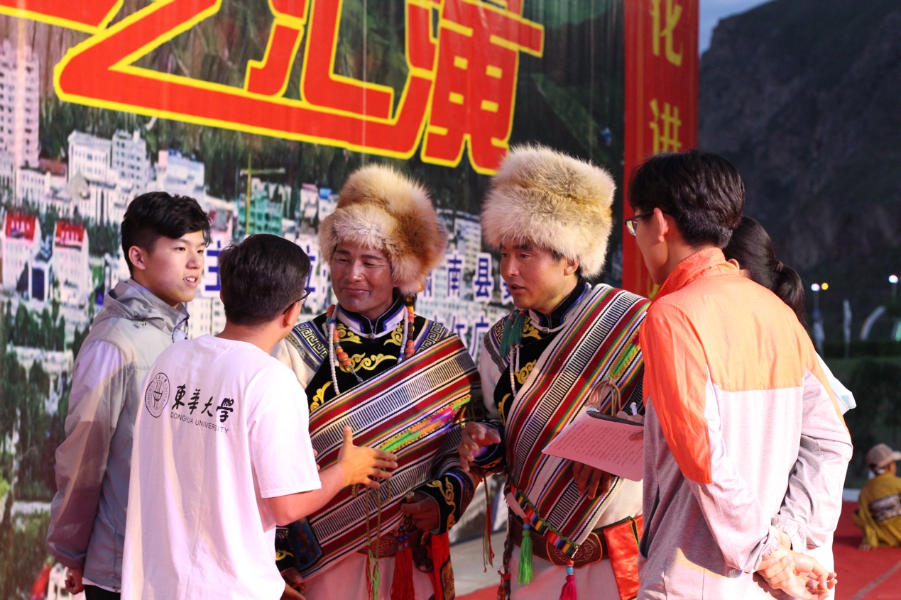 图为人文学院“小脚丫”实践团采访裕固族表演嘉宾