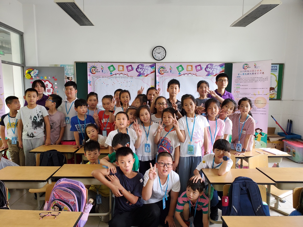图为马克思主义学院苗苗宣讲团和暑托班学生合影