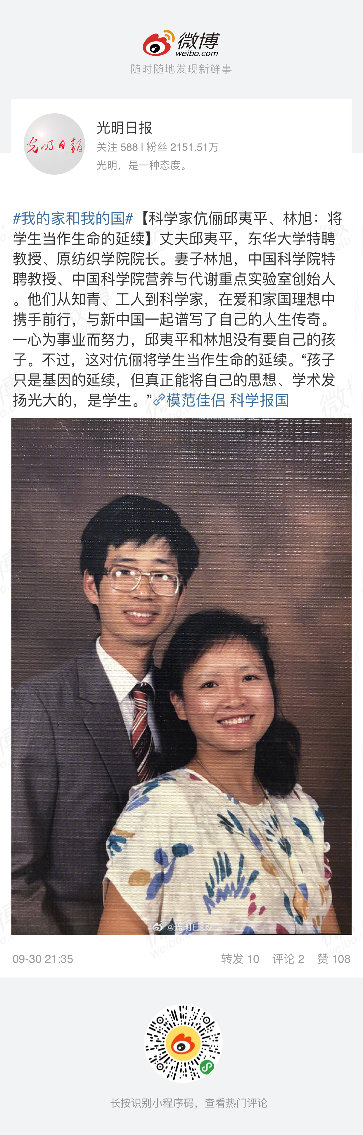 【《光明日报》】科学家伉俪邱夷平与林旭:
