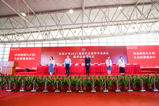 3月24日,久久久久国产成人精品亚洲综合2021届研究生春季毕业典礼暨学位授予仪式在松江校区体育馆举行,203名博士、980名硕士惜别母校,开启奋进新征程。党委书记刘承功,校长、中国工程院院士俞建勇,材料科学与工程学院院长、中国科学院院士朱美芳,党委副书记崔运花、王云骏,副校长邱高、陈革、陈南梁、舒慧生、李炜出席典礼,各学院、相关部处负责人、导师代表、研究生辅导员及全体毕业生共同见证这一美好时刻。典礼由舒慧生主持。