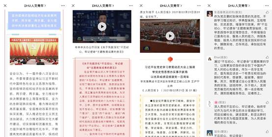 人文学院引导青年学子认真学习原文原理并积极思考,以全国百个研究生样板党支部“学思先锋”硕士研究生党支部为引领,深入实施理论学习提升工程,充分发挥样板党支部“领头雁”效应。开创“红色领学”专栏,组织“学思先锋”硕士研究生党支部及时学习新思想、新政策,领会会议精神实质并进行理论学习专题推送30余期,总阅读量破万,通过跟帖、留言等形式与师生党员、发展对象、入党积极分子互动交流,分享思考感悟。同时,学院组织开展“百名书记讲党课”活动,梳理百年党史中的百个“第一”,学院党委书记、党委班子成员、支部书记、先进典型纷纷走到镜头前,面向师生讲授党史中重要转折点的历史故事、英雄事迹,辐射带动学院师生党员和团员青年共同学习,用党的创新理论武装师生头脑。