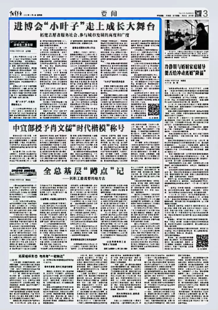 中青报·中青网记者注意到,进博会不仅是大学生“小叶子”的舞台,也是一群已经走上工作岗位的青年志愿者的舞台。