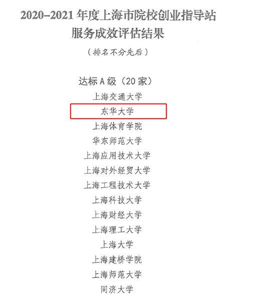 日前,上海市就业促进中心、上海市学生事务中心公布2020-2021年度上海市院校创业指导站服务成效评估结果,我校创业指导站获评A级。