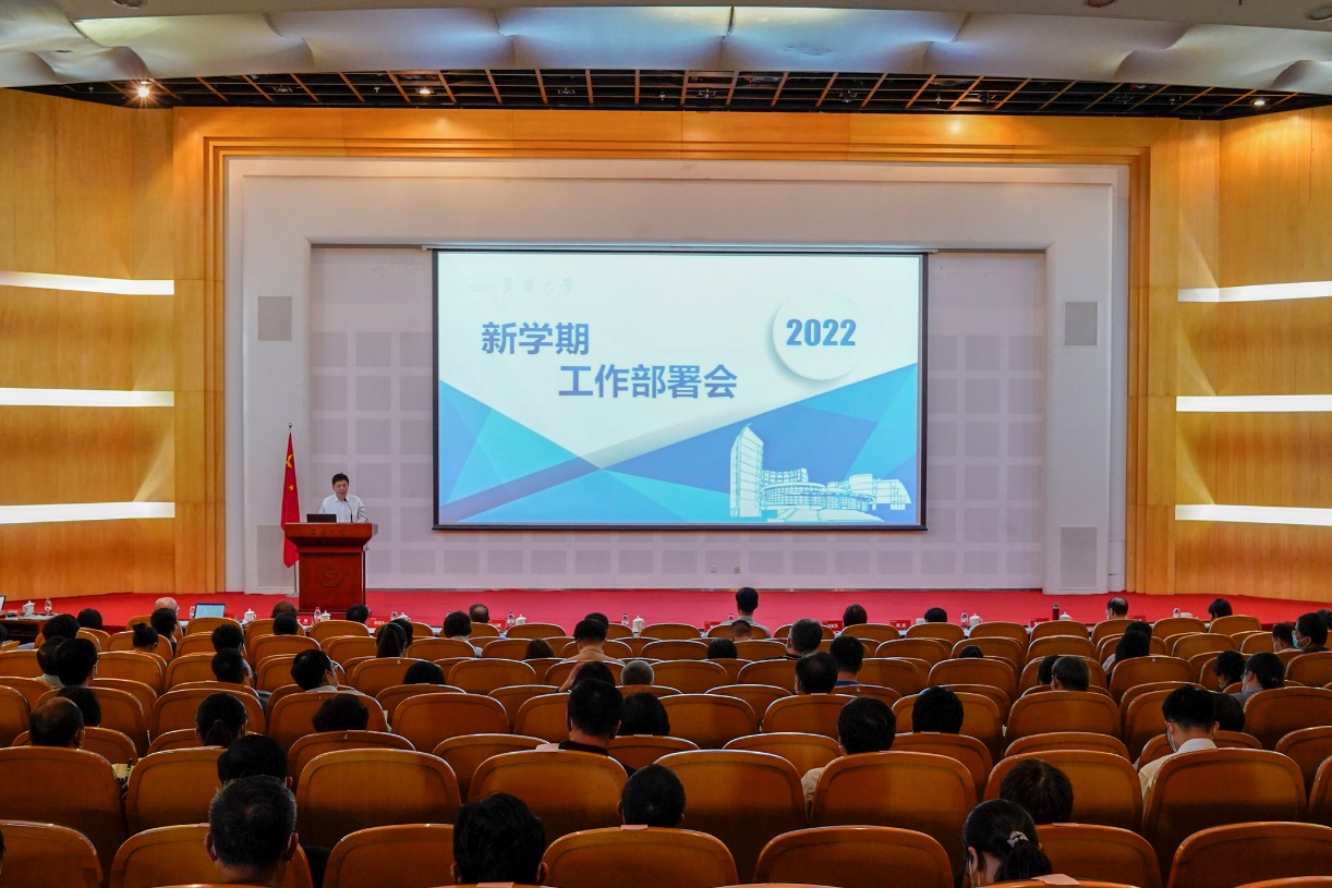 9月7日下午,学校在松江校区召开2022年下半年工作部署会,延安路校区设视频分会场。会议强调,要以习近平新时代中国特色社会主义思想为指导,深刻领会“两个确立”的决定性意义,增强“四个意识”,坚定“四个自信”,做到“两个维护”。以迎接学习贯彻党的二十大为主线,遵循新时代党的教育方针,落实立德树人根本任务,积极构建“大党建”格局,深入推进以学科建设为统领的高质量发展,凝心聚力,奋发有为,加快建设国内一流、国际有影响,有特色的高水平研究型大学,以实际行动迎接党的二十大胜利召开。