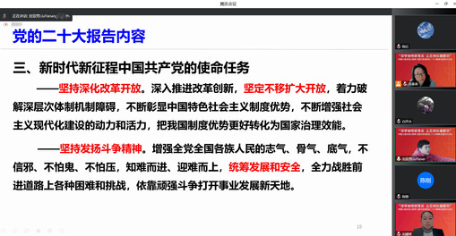 环境工程系党支部党员、学院副院长李方老师以“科教兴国,自立自强”为主题,带领支部全体党员学习了二十大报告中关于实施科教兴国、人才强国战略的关键论述,并立足学院学科特色,提出未来教学研究方向的建议;环境工程系党支部党员、学院副院长刘亚男老师以“从进化论角度深入学习党的二十大报告”为题,以进化论为类比,生动形象地向支部全体党员教师回顾了我国开辟马克思主义中国化的历史进程,从路径依赖、生物多样化、马太效应等新的视角提出我校专业发展特色化、多样化、可持续发展及风险挑战的思考与建议,并提出教师能力全面发展的重要性。