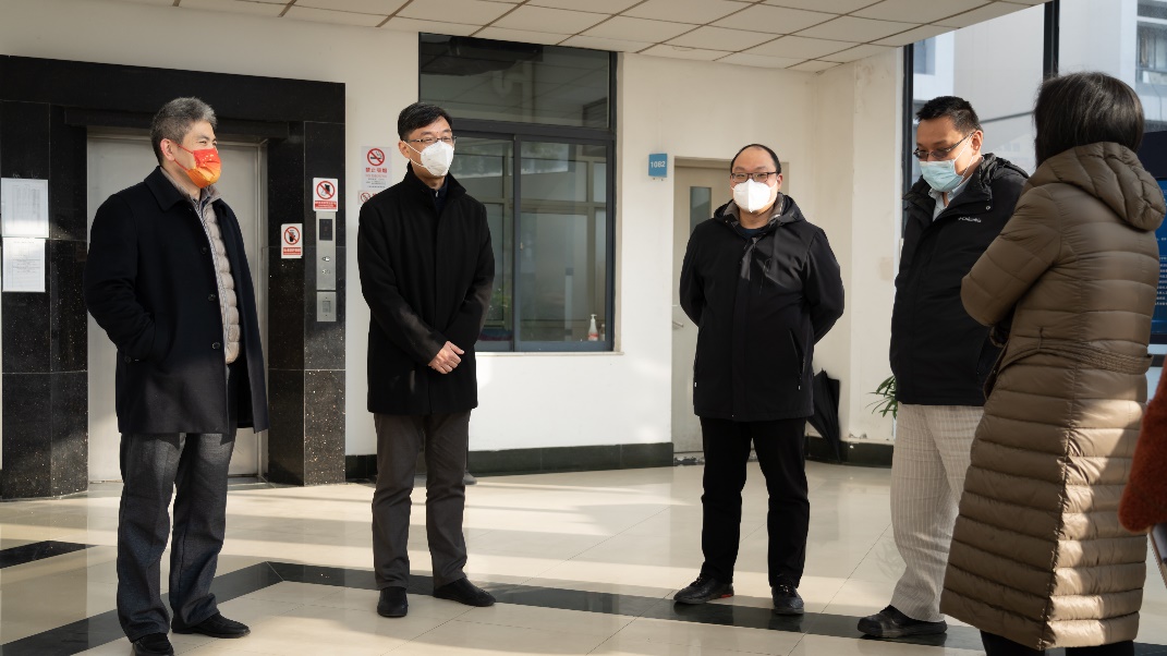 1月20日,党委书记刘承功,校长俞建勇,副校长陈革、李炜在两校区看望慰问春节留校学生及教职员工,检查寒假期间校园安全工作,相关部门负责人一同参加。